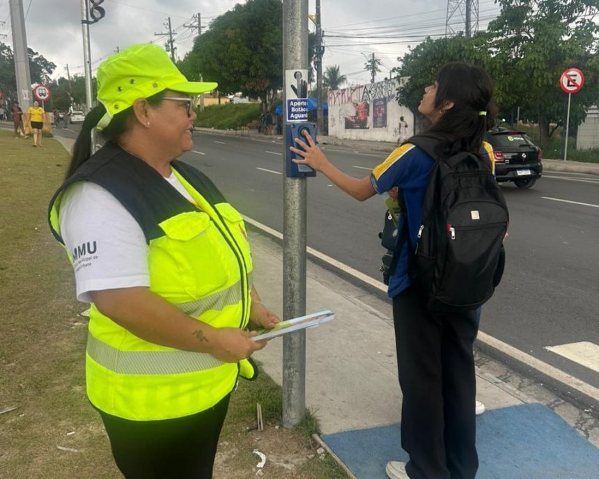 A Prefeitura de Manaus, por meio do Instituto Municipal de mobilidade urbana (IMMU), realizou, nesta quinta-feira, 13/11, mais uma ação educativa voltada à segurança no trânsito. A atividade ocorreu na avenida Camapuã, em frente ao shopping Phelippe Daou, zona Norte, e teve como foco orientar pedestres sobre o uso correto da botoeira recentemente instalada no local.