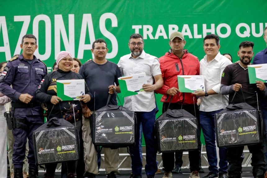Motofretistas de Manaus beneficiados com kits de segurança e identificação entregues pelo governador Wilson Lima, nesta quinta-feira (02/10), destacaram a importância dos equipamentos recebidos e dos cursos de capacitação ofertados pela escola pública de Trânsito (Eptran) do Departamento Estadual de Trânsito do Amazonas (Detran-AM).