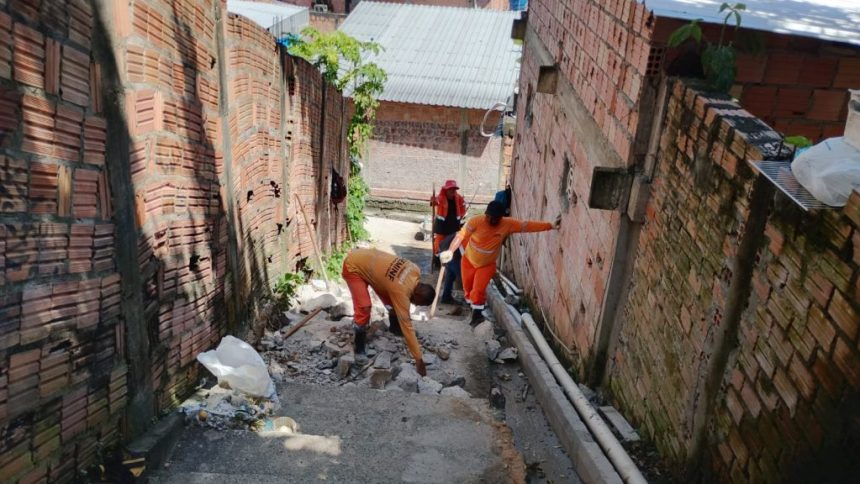 Portal Amazonas Virtual > Blog > Manaus > Prefeitura avança na recuperação de escada em concreto na rua Itapiranga, no bairro Tancredo Neves