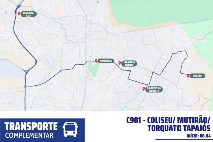 A partir desta segunda-feira, 6/4, a linha de ônibus C-901 (Coliseu/Mutirão/Torquato Tapajós) entra em operação na capital. A nova linha…