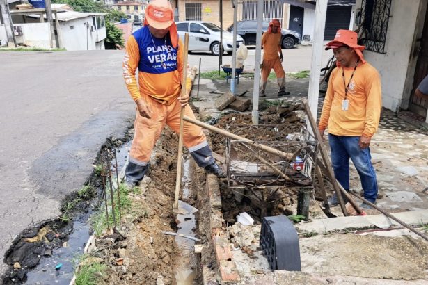 Intervenção emergencial da Prefeitura de Manaus na rede de drenagem profunda da rua Araxá após…