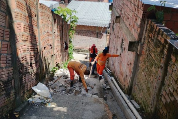 Prefeitura avança na recuperação de escada em concreto na rua Itapiranga, no bairro Tancredo Neves