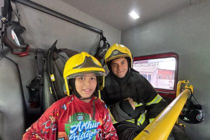 A comemoração foi no bairro Grande Vitória, zona leste de Manaus Fotos: Paulo Bahia/CBMAMFã dos Bombeiros, o pequeno Arthur Christopher…